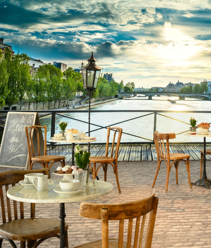 Durch großflächige Inszenierung eines Wandbildes erhält eine Fotografie einen spürbaren 3-D-Eindruck. Einfach, weil es in seiner 1:1-Darstellung in Höhe und Breite dem menschlichen Auge nahe vorkommt. Der Betrachter weiß zwar, dass es sich um eine Fotografie handelt, dennoch nimmt er den verblüffenden Eindruck gerne als erlebbare „Inszenierung“ an – vorausgesetzt, das Bild gefällt ihm. Eines ist dazu aber von größerer Bedeutung: Das Bild muss extrem scharf aufgelöst sein. Wir arbeiten oft mit Bilddatei- en von 1 bis 2,5 Gigabyte . Die Druckdatei sollte in ihrer Endbildgröße mindestens 100 dpi, besser 300 dpi aufwei- sen. Auch noch etwas Anderes ist sehr wichtig. Für eine mög- lichst naturgetreue Wiedergabe ist eine großflächige Hin- terleuchtung von großem Vorteil. Hinterleuchtete Bilder wirken realer, als wenn man hineinlaufen könnte. Unter- stützt wird der Eindruck durch die gleichmäßige und helle Lichtausbeute. Noch eindrucksvoller wirkt die bauliche Implementierung von Elementen wie einem Mäuerchen oder einer Balus- trade, einem Fensterrahmen oder einem Stützpfeiler im Vordergrund. Dadurch erhöhen Sie den 3-D Eindruck. Ebenfalls eindrucksvoll ist die Fortführung der Dekoration aus dem Bild bis in den realen Vordergrund hinein.